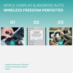 📲 Funciona com iPhone (iOS 12.1+) e Android (10.0+) – suporta tanto CarPlay como Android Auto no mesmo adaptador, sem necessidade de aplicação