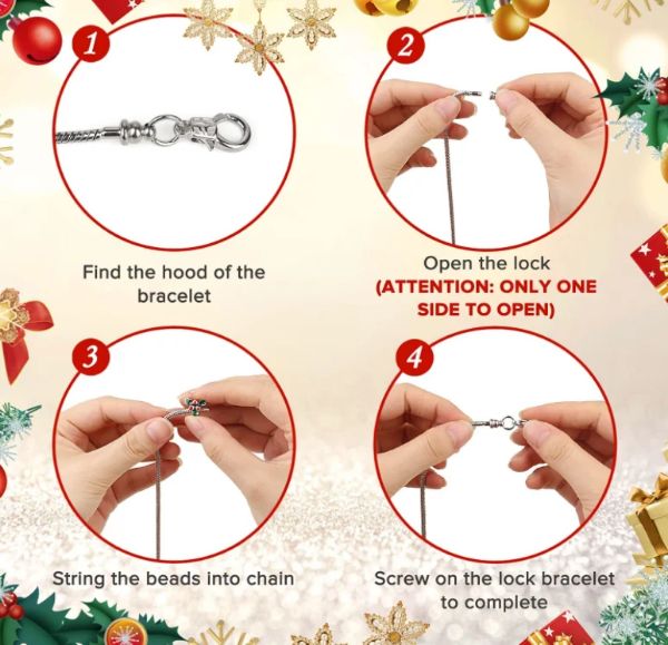 O calendário do advento do Natal inclui 22 pingentes e 2 pulseiras para criar duas pulseiras encantadoras.