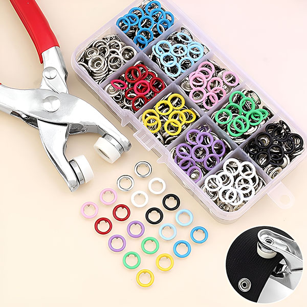 Este kit inclui tudo o que precisa: uma ferramenta de alicate durável, 80 fechos de metal de alta qualidade em cores variadas e um estojo de armazenamento compacto.