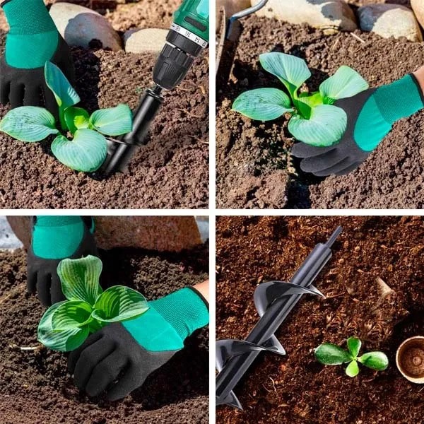 HOLEDRILL torna a plantação mais fácil ao perfurar buracos precisos em segundos. Basta acoplá-lo ao seu berbequim e deixar que ele faça o trabalho— chega de fazer buracos com pás ou ferramentas manuais.